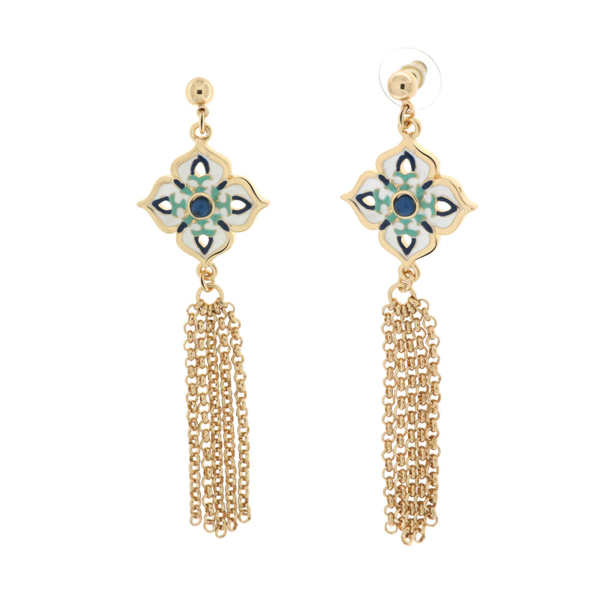 Orecchini in Metallo con croce di Malta e frange pendenti