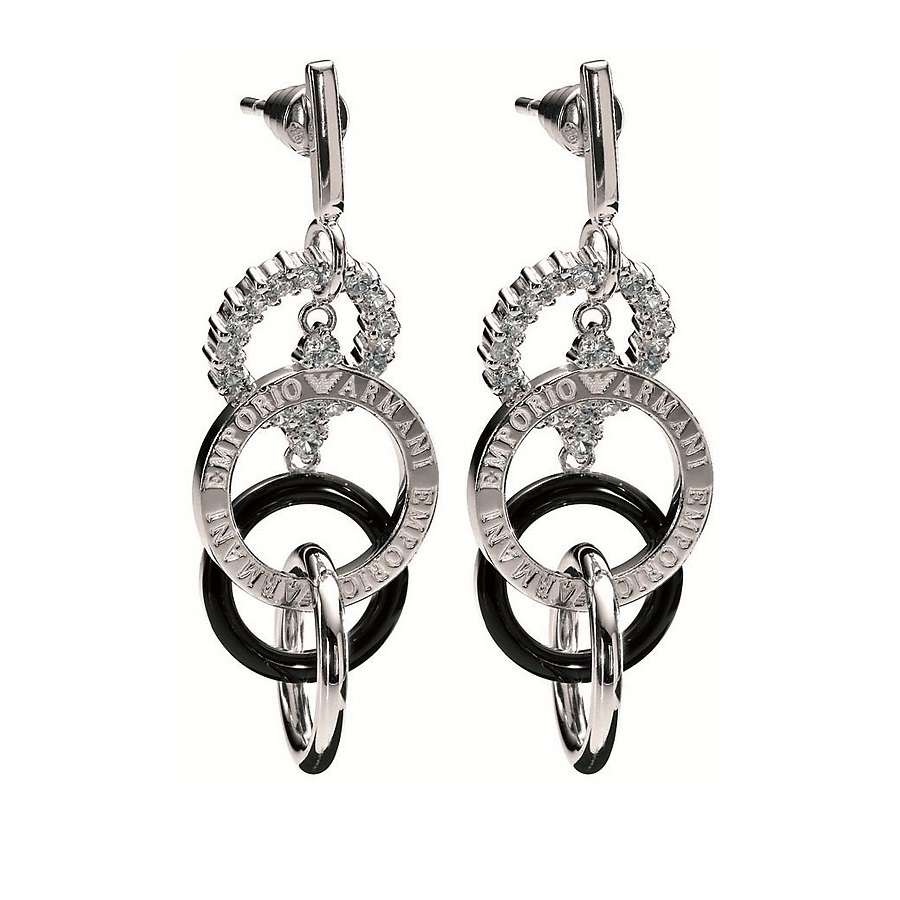 Orecchini pendenti in argento 925 placcatura rodio, dettagli in ceramica nera e zirconi bianchi.