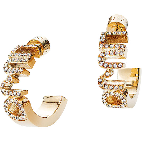 Orecchini in acciaio di colore oro con zirconi decorativi.