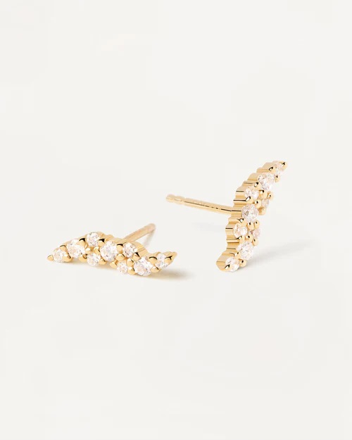 Orecchini a lobo NATURA, in argento placcatura oro 18kt e zirconi bianchi.