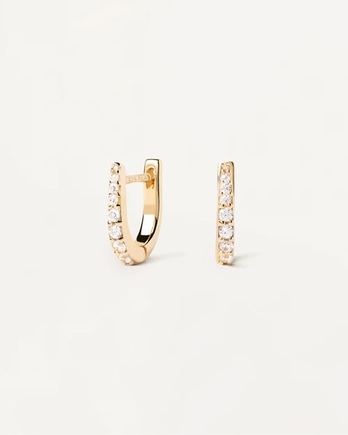 Orecchini a cerchio di forma ovale STARE, in argento placcatura oro 18kt e zirconi bianchi.