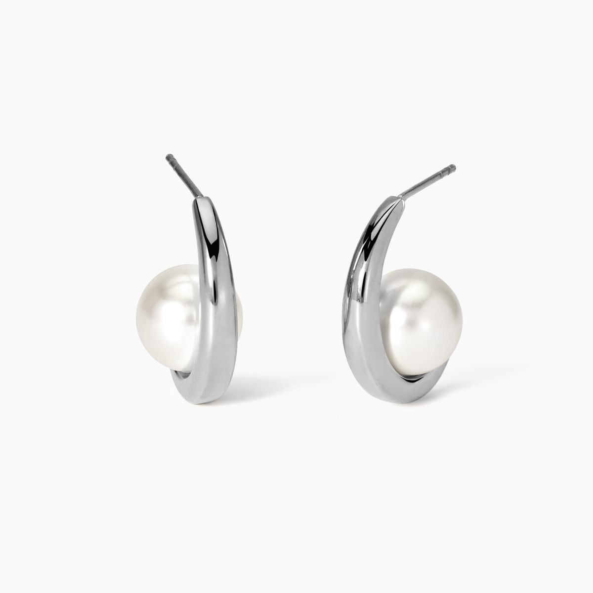 Orecchini semicerchio in acciaio e perle conchiglia.