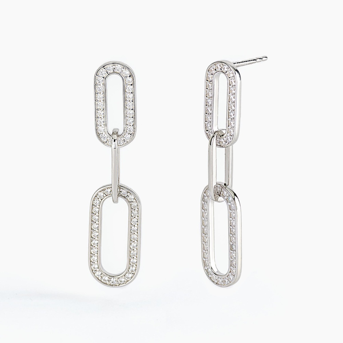 Orecchini a maglie ovali piatte in argento 925 lisce e in pavé di zirconi.