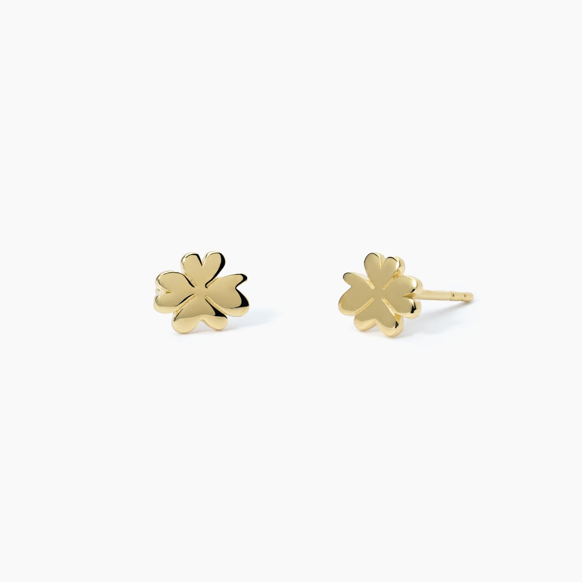 Orecchini a lobo in argento placcato oro 18k a forma di quadrifoglio.