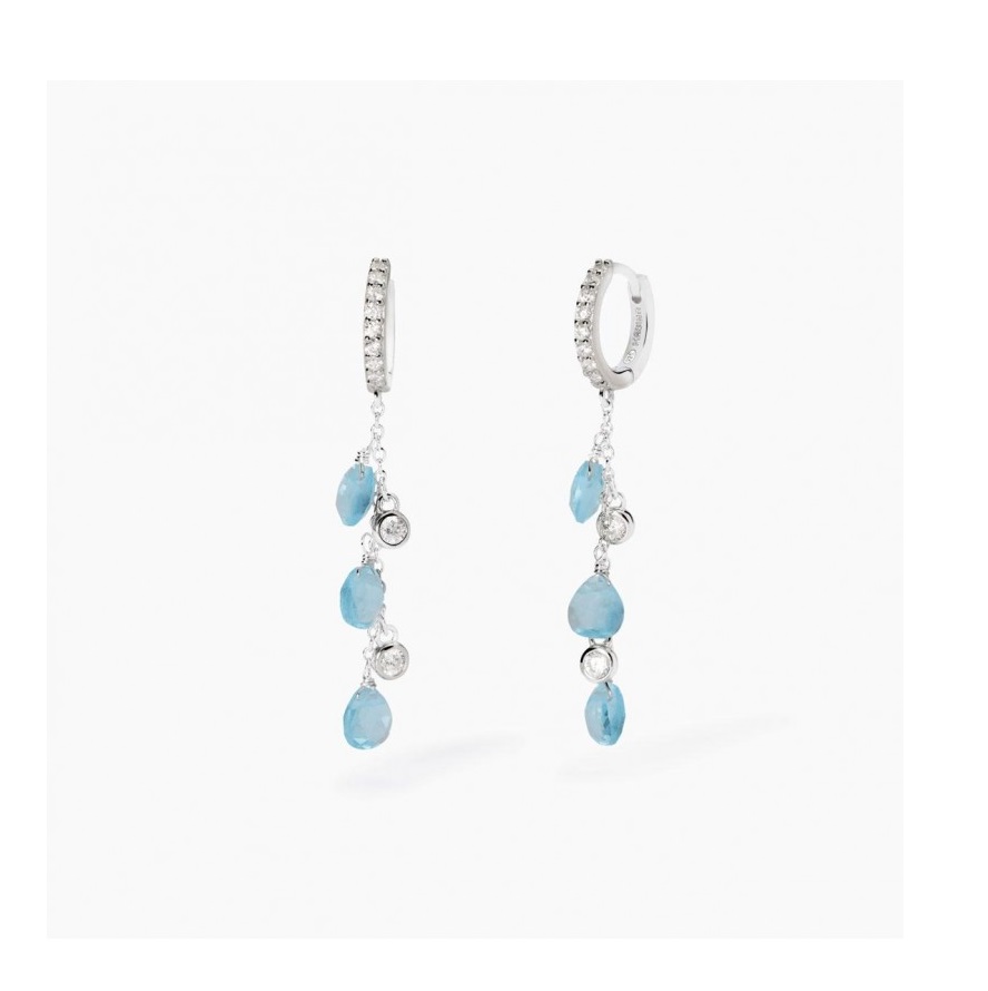 Orecchini da donna in argento rodiato a cerchio con pendente acquamarina sintetica e zirconi.