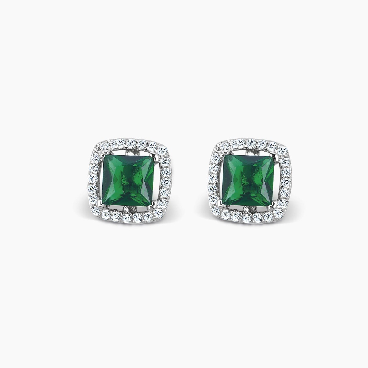 Orecchini a lobo quadrati in argento con smeraldo sintetico a taglio cuscino antico e zirconi.