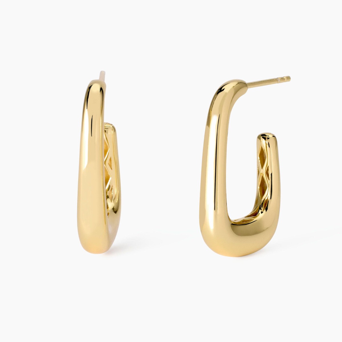 Orecchini da donna rettangolari chunky in argento placcato oro 18K.