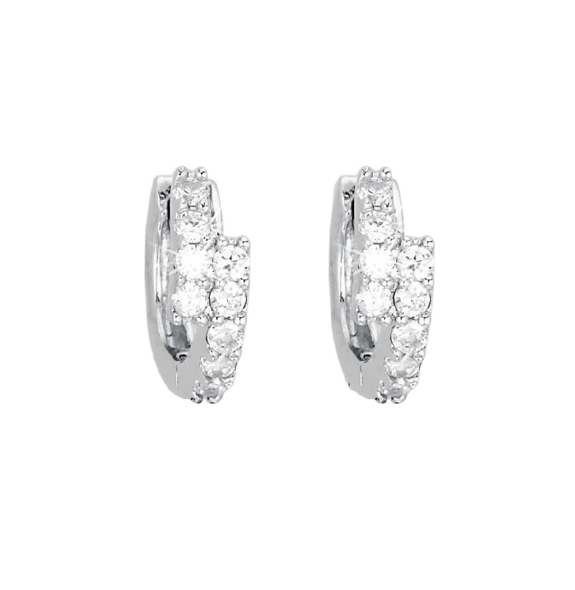 Orecchini a cerchio in argento con zirconi.
