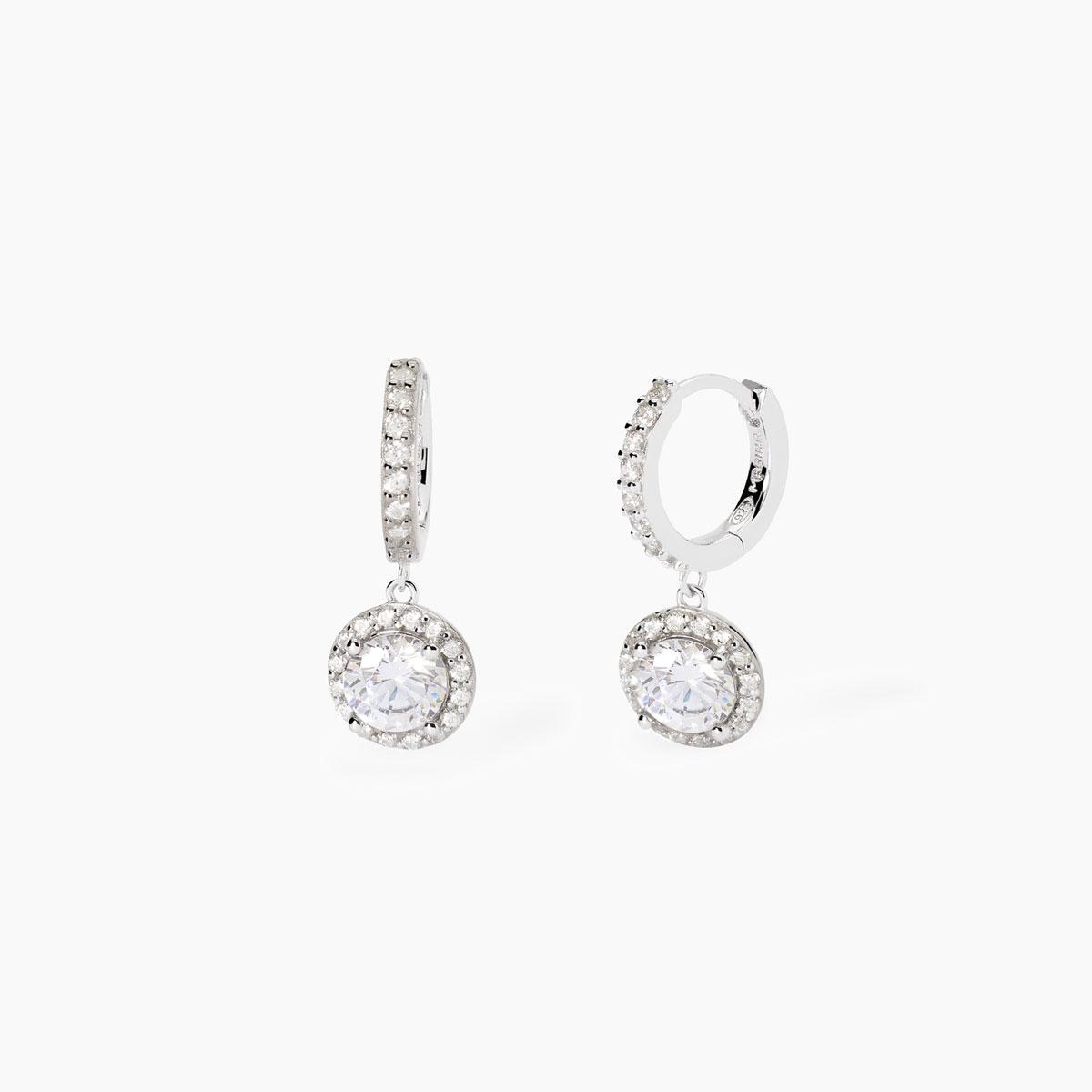 Orecchini da donna in argento rodiato a cerchio con pendente in zirconi.