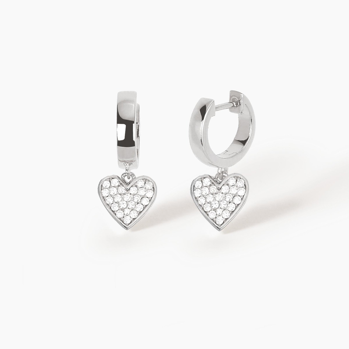 Orecchini a cerchio in argento con pendente a cuore in pavé di zirconi.