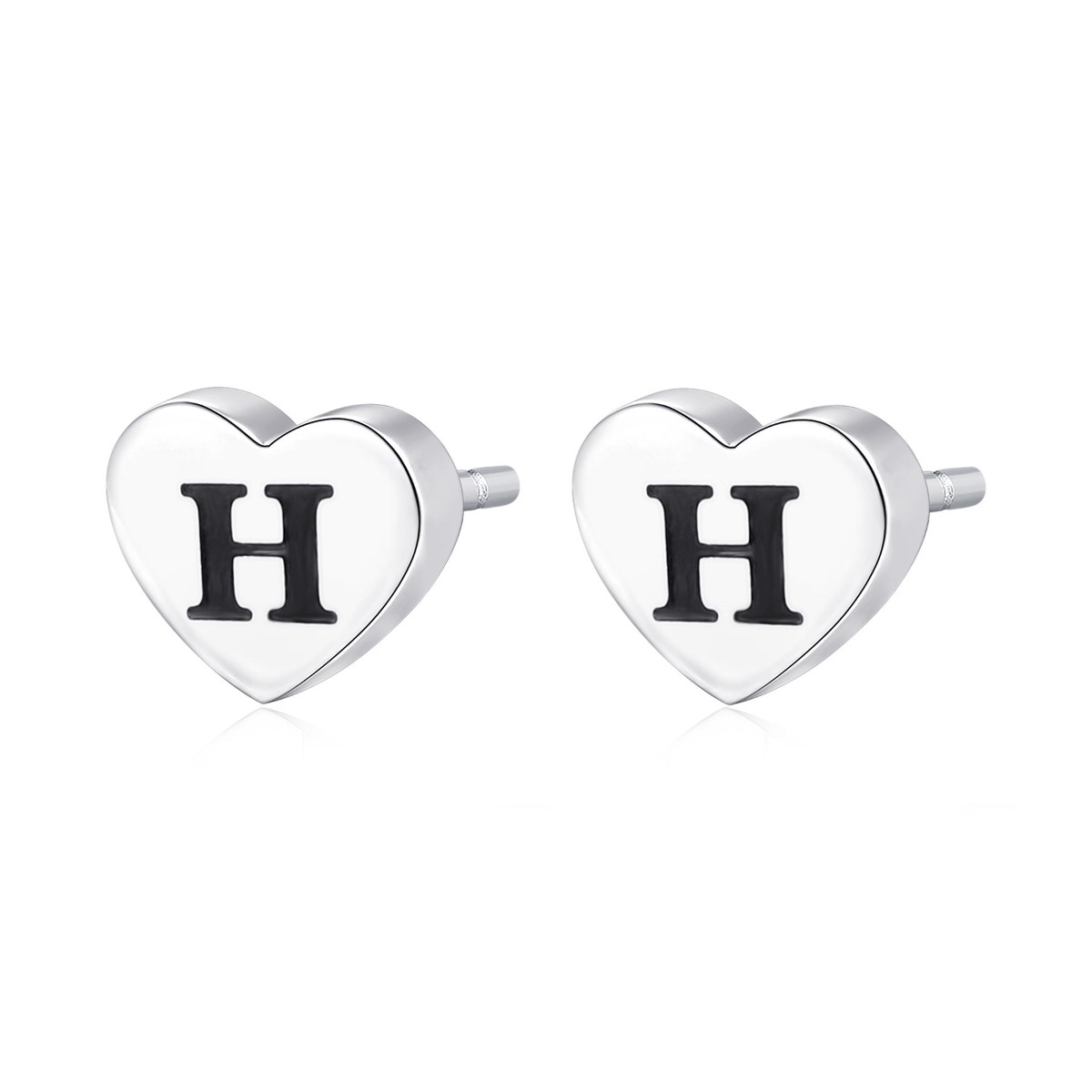 Orecchini a lobo a forma di cuore in acciaio 316L con lettera H e smalto nero.