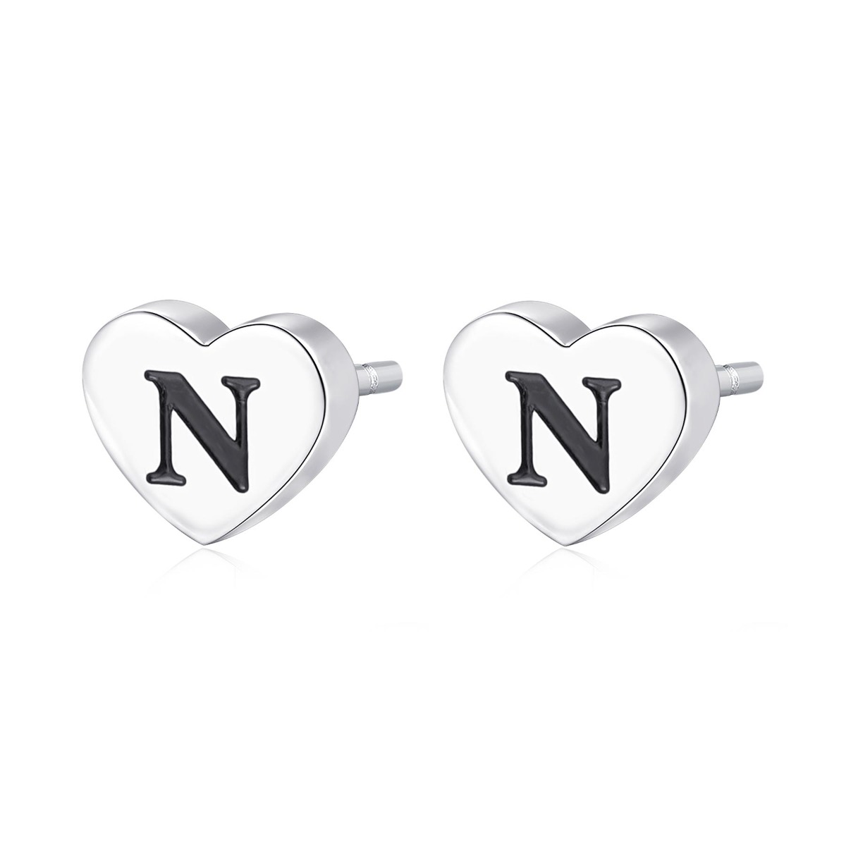 Orecchini a lobo a forma di cuore in acciaio 316L con lettera N e smalto nero.