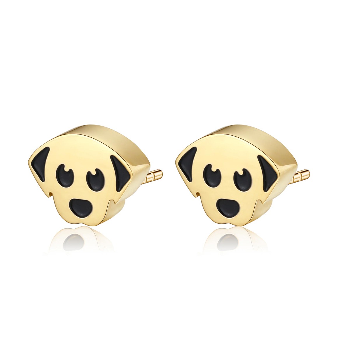 Orecchini a lobo in acciaio 316L a forma di cane, finitura pvd oro 14K e smalto nero.