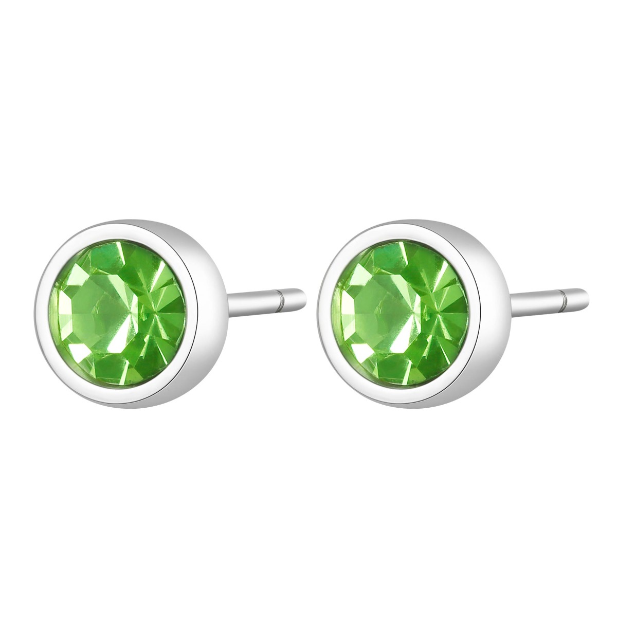 Orecchini a lobo in acciaio 316L e cristalli verde.