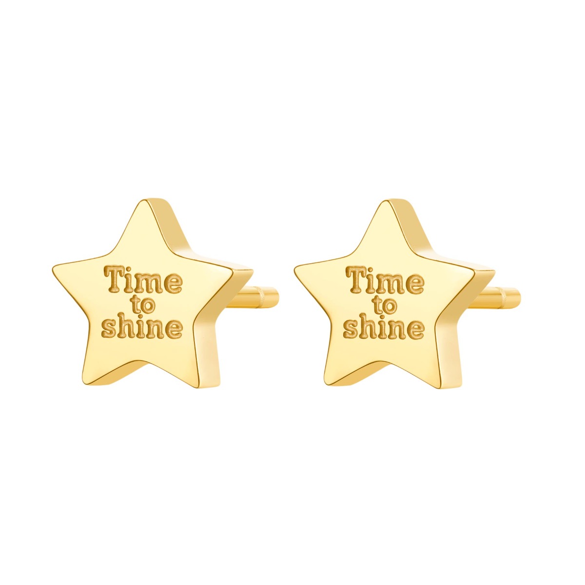 Orecchini a lobo in acciaio 316L a forma di stella, finitura pvd oro 14K e incisione "Time to shine".