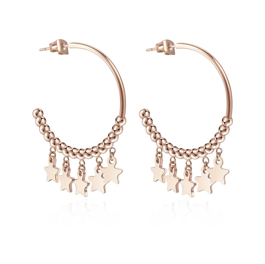 Orecchini Da Donna Di Sagapo Della Collezione Medina. Gioiello In Acciaio E Pvd Rosa Con Stelle.