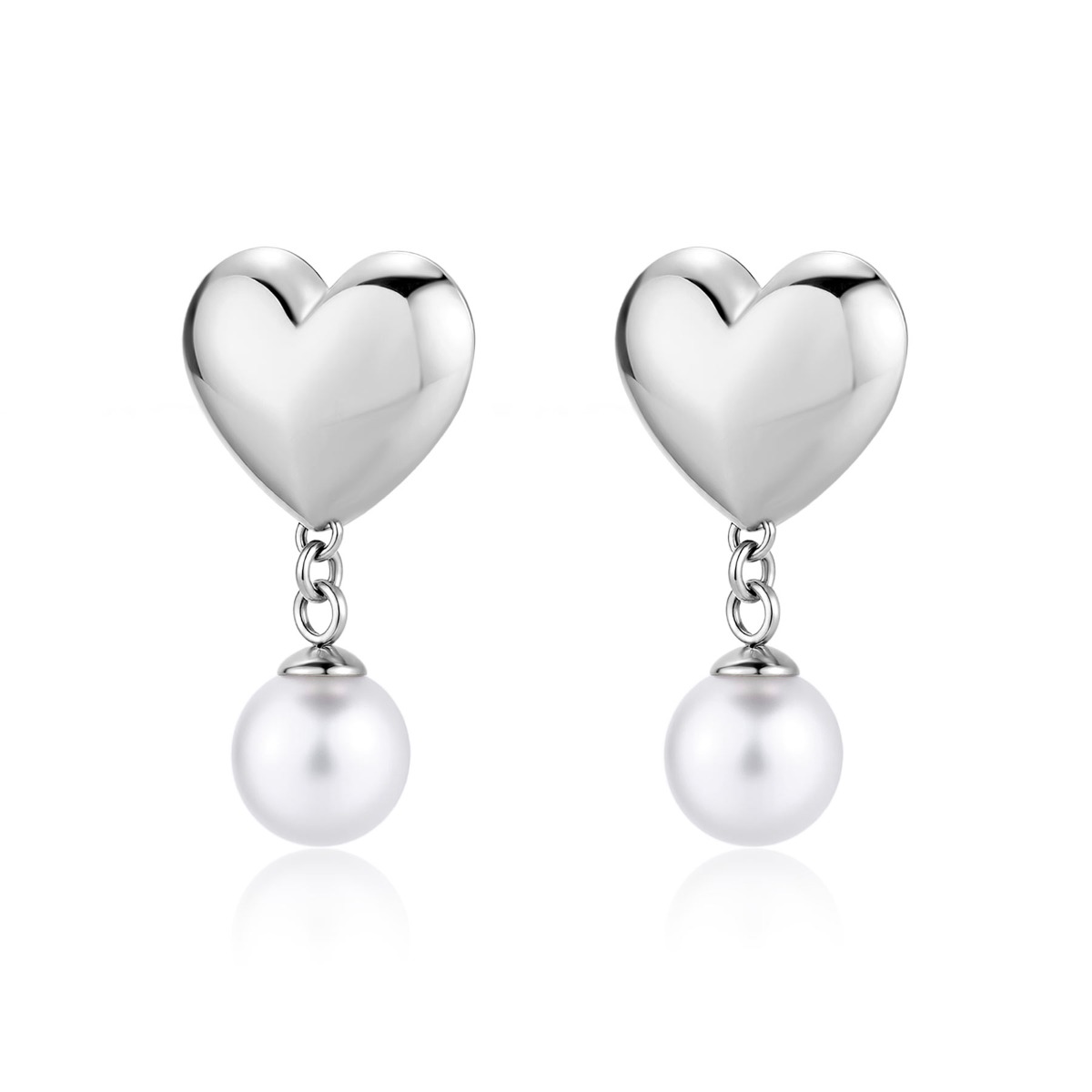 Orecchini pendenti in acciaio 316L a forma di cuore con perle.