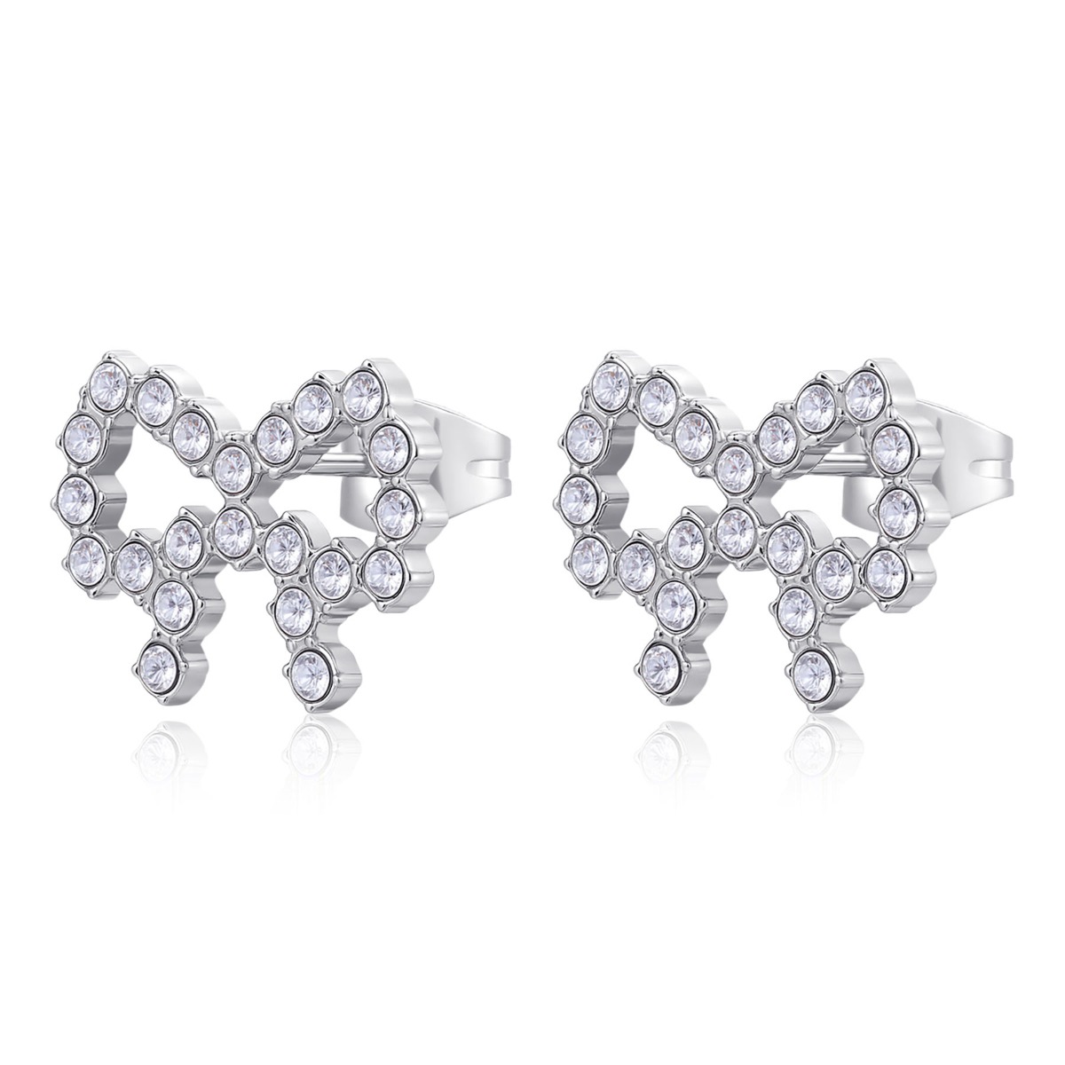 Orecchini a lobo a forma di fiocco in acciaio 316L e cristalli.