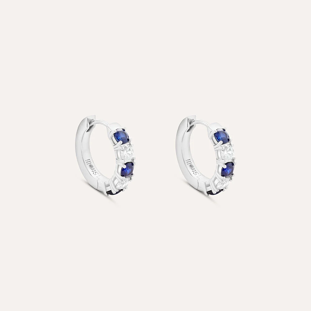Orecchini A Cerchio Silver Elegance Argento Rodiato 925/1000 Diametro 10 mm Cubic Zirconia Blu Cubic Zirconia Bianco.
