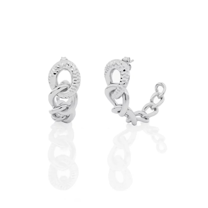 Orecchini a cerchio aperto in bronzo placcato argento a maglia grumetta degradé con finitura lucida e diamantata.