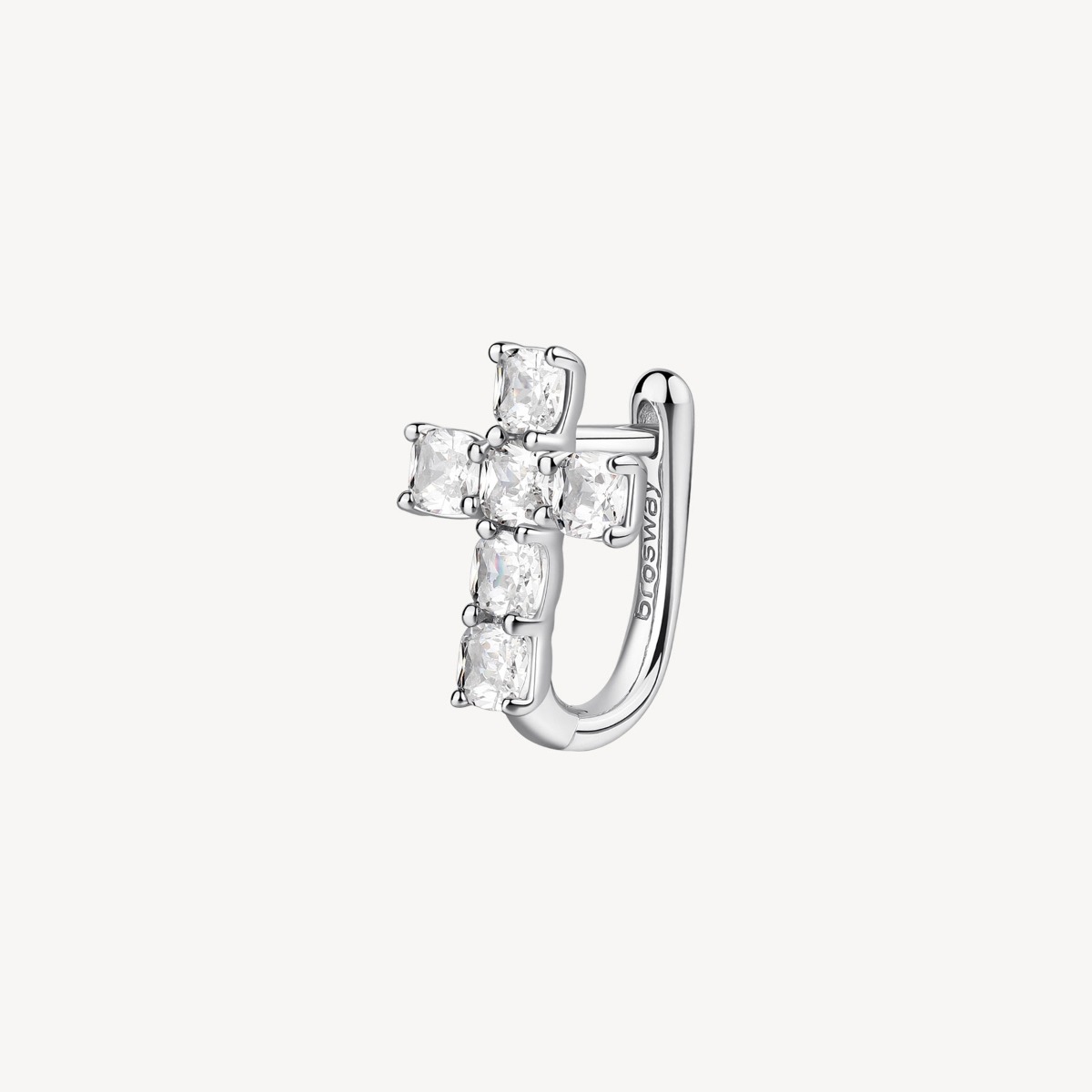 Orecchino singolo a lobo in argento rodiato 925‰ a forma di croce con cushion cubic zirconia.