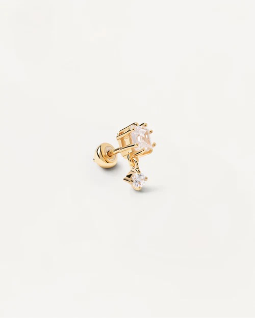 Orecchino singolo a lobo ELI, in argento placcatura oro 18kt e zirconi bianchi.